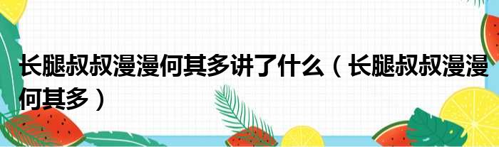 长腿叔叔漫漫何其多讲了什么(长腿叔叔漫漫何其多)