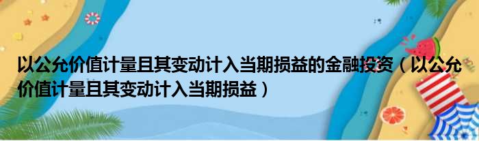 大家好,小东方来为大家解答以上的问题。以公允价值计量且其变动计入当期损益的金融投资,以公允价值计量且其变动计入当期损益这个很多人还不知道,现在让我们一起来看看吧!