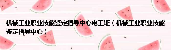 机械工业职业技能鉴定指导中心电工证(机械工业职业技能鉴定指导中心)