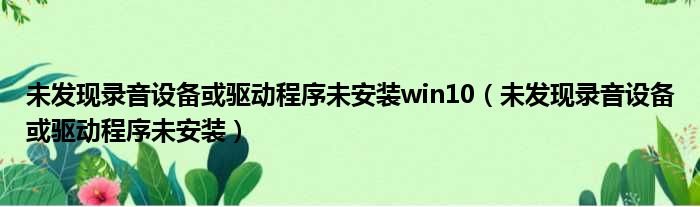 未发现录音设备或驱动程序未安装win10(未发现录音设备或驱动程序未安装)