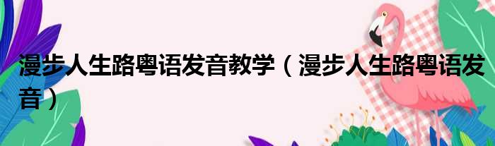 漫步人生路粤语发音教学(漫步人生路粤语发音)