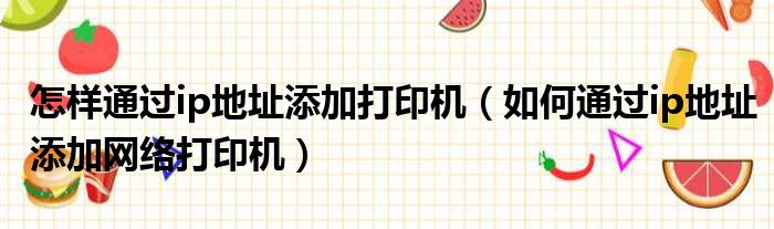 怎样通过ip地址添加打印机(如何通过ip地址添加网络打印机)