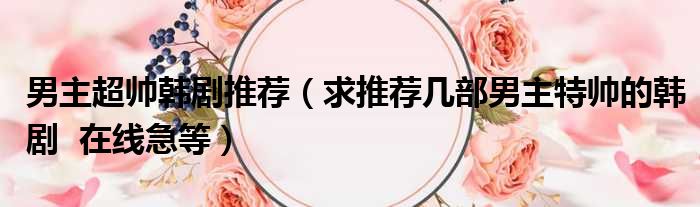 导读 大家好,小东方来为大家解答以上的问题。男主超帅韩剧推荐,求推荐几部男主特帅的韩剧 在线急等这个很多人还不知道,现在让我们一起来看看
