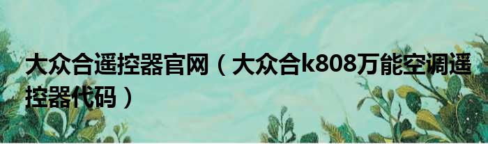 导读 大家好,小东方来为大家解答以上的问题。大众合遥控器官网,大众合k808万能空调遥控器代码这个很多人还不知道,现在让我们一起来看看吧!1、