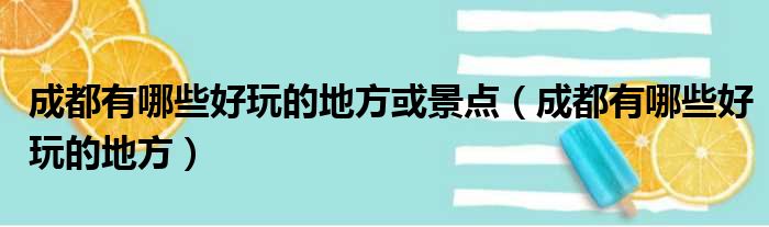 成都有哪些好玩的地方或景点(成都有哪些好玩的地方)