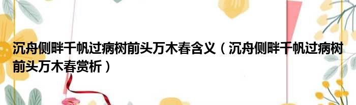 沉舟侧畔千帆过病树前头万木春含义(沉舟侧畔千帆过病树前头万木春赏析)