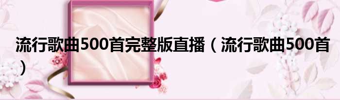 大家好,小东方来为大家解答以上的问题。流行歌曲500首完整版直播,流行歌曲500首这个很多人还不知道,现在让我们一起来看看吧!