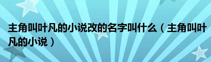 主角叫叶凡的小说改的名字叫什么(主角叫叶凡的小说)