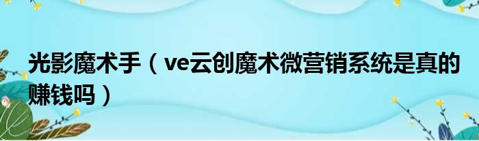 光影魔术手(ve云创魔术微营销系统是真的赚钱吗)