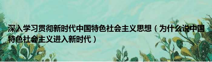 深入学习贯彻新时代中国特色社会主义思想(为什么说中国特色社会主义进入新时代)