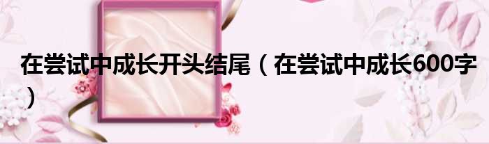 大家好,小东方来为大家解答以上的问题。在尝试中成长开头结尾,在尝试中成长600字这个很多人还不知道,现在让我们一起来看看吧!