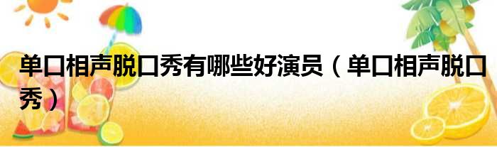 单口相声脱口秀有哪些好演员(单口相声脱口秀)