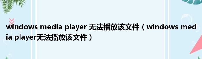 windows media player 无法播放该文件(windows media player无法播放该文件)