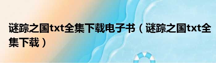 谜踪之国txt全集下载电子书(谜踪之国txt全集下载)