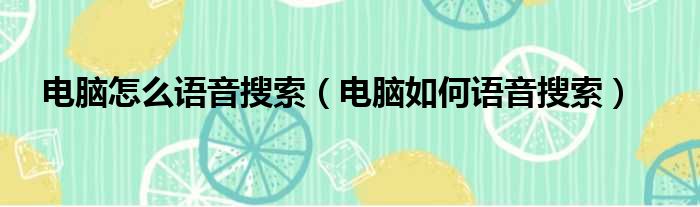 电脑怎么语音搜索(电脑如何语音搜索)