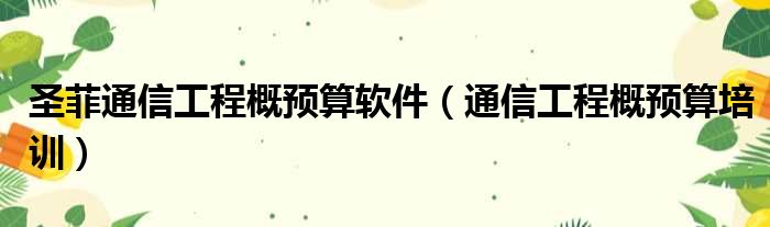 圣菲通信工程概预算软件(通信工程概预算培训)