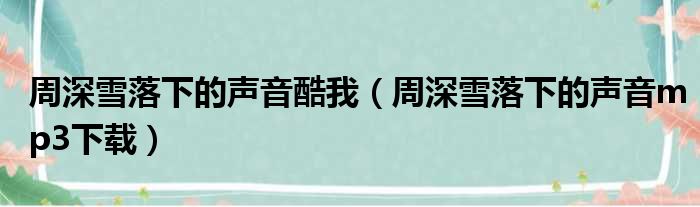 周深雪落下的声音酷我(周深雪落下的声音mp3下载)