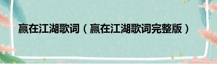 大家好,小东方来为大家解答以上的问题。赢在江湖歌词,赢在江湖歌词完整版这个很多人还不知道,现在让我们一起来看看吧!