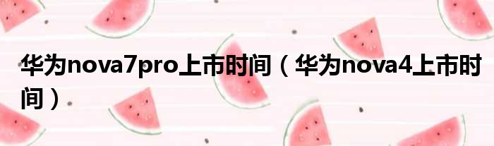 导读 大家好,小东方来为大家解答以上的问题。华为nova7pro上市时间,华为nova4上市时间这个很多人还不知道,现在让我们一起来看看吧!1、华为nova