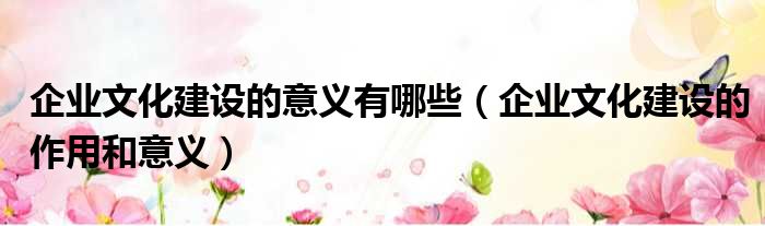 企业文化建设的意义有哪些(企业文化建设的作用和意义)