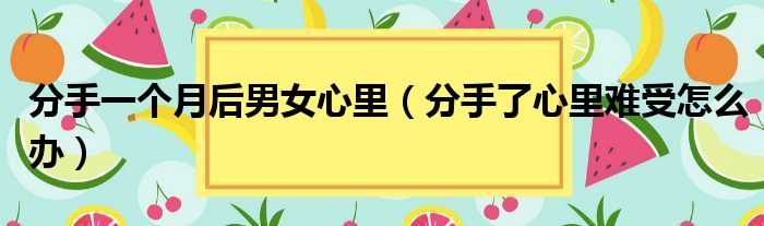 大家好,小东方来为大家解答以上的问题。分手一个月后男女心里,分手了心里难受怎么办这个很多人还不知道,现在让我们一起来看看吧!