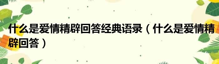 什么是爱情精辟回答经典语录(什么是爱情精辟回答)