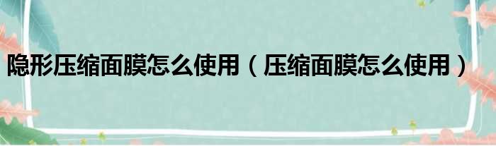 隐形压缩面膜怎么使用(压缩面膜怎么使用)