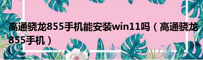 高通骁龙855手机能安装win11吗(高通骁龙855手机)