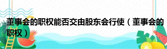 导读 大家好,小东方来为大家解答以上的问题。董事会的职权能否交由股东会行使,董事会的职权这个很多人还不知道,现在让我们一起来看看吧!1、召