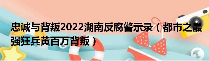 忠诚与背叛2022湖南反腐警示录(都市之最强狂兵黄百万背叛)