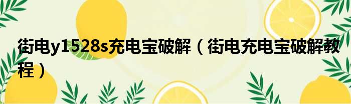 街电y1528s充电宝破解(街电充电宝破解教程)