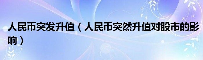 导读 大家好,小东方来为大家解答以上的问题。人民币突发升值,人民币突然升值对股市的影响这个很多人还不知道,现在让我们一起来看看吧!1、人民