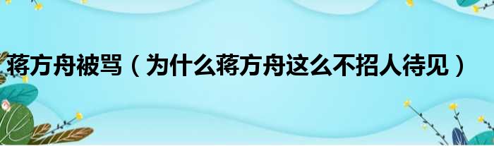 蒋方舟被骂(为什么蒋方舟这么不招人待见)