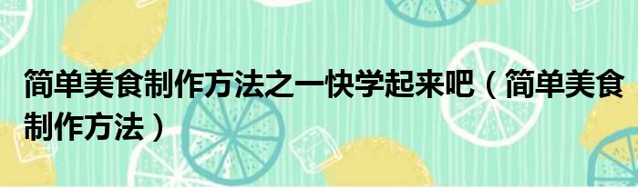 简单美食制作方法之一快学起来吧(简单美食制作方法)