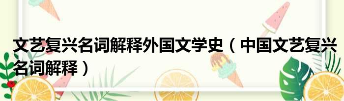 文艺复兴名词解释外国文学史(中国文艺复兴名词解释)
