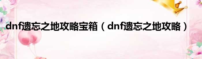 dnf遗忘之地攻略宝箱(dnf遗忘之地攻略)