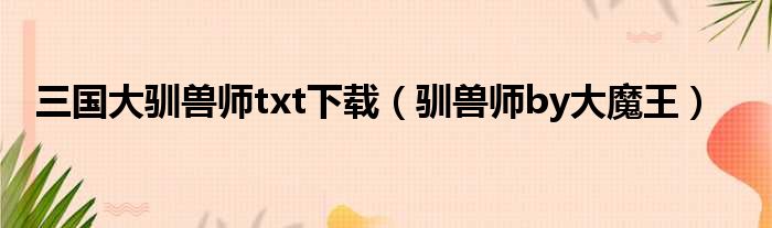 三国大驯兽师txt下载(驯兽师by大魔王)