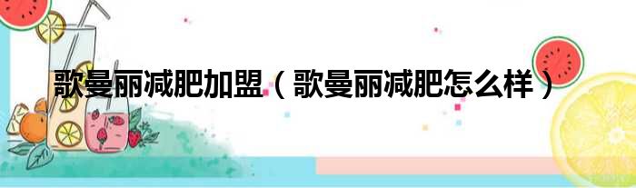 歌曼丽减肥加盟(歌曼丽减肥怎么样)