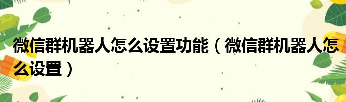 微信群机器人怎么设置功能(微信群机器人怎么设置)