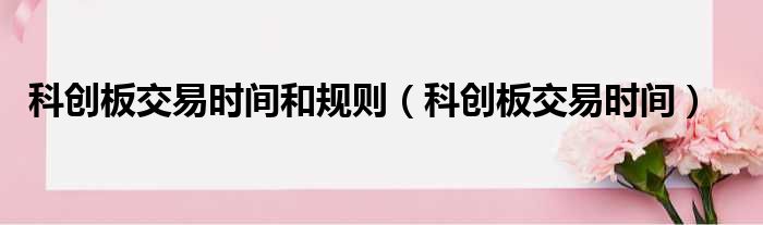 科创板交易时间和规则(科创板交易时间)