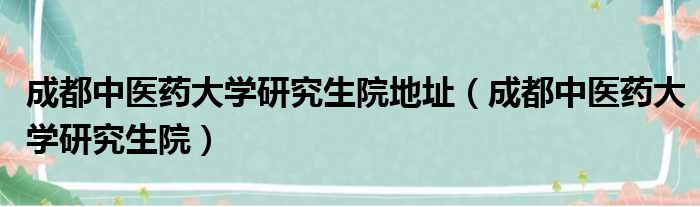 成都中医药大学研究生院地址(成都中医药大学研究生院)