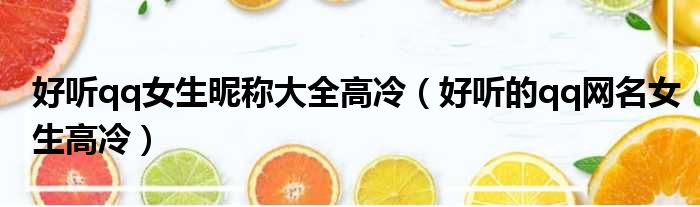 好听qq女生昵称大全高冷(好听的qq网名女生高冷)