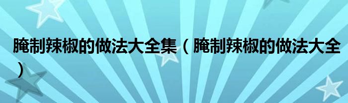 腌制辣椒的做法大全集(腌制辣椒的做法大全)