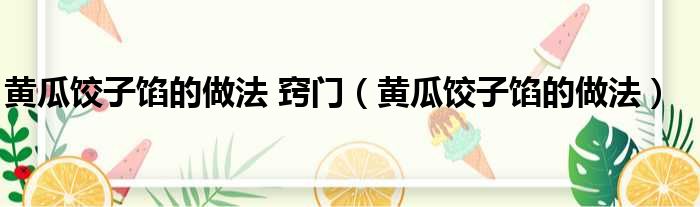 黄瓜饺子馅的做法 窍门(黄瓜饺子馅的做法)