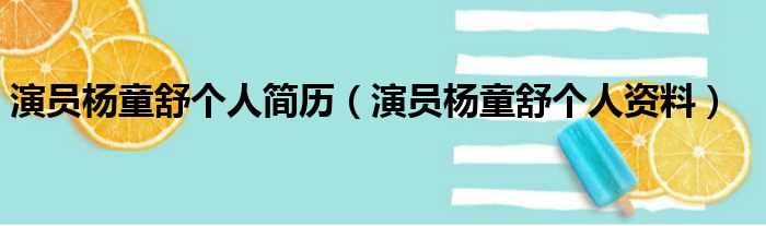 演员杨童舒个人简历(演员杨童舒个人资料)
