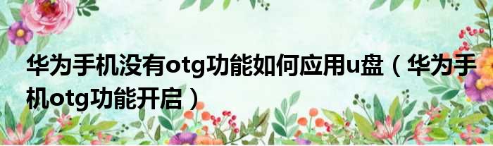 华为手机没有otg功能如何应用u盘(华为手机otg功能开启)