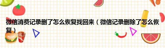 微信消费记录删了怎么恢复找回来(微信记录删除了怎么恢复)