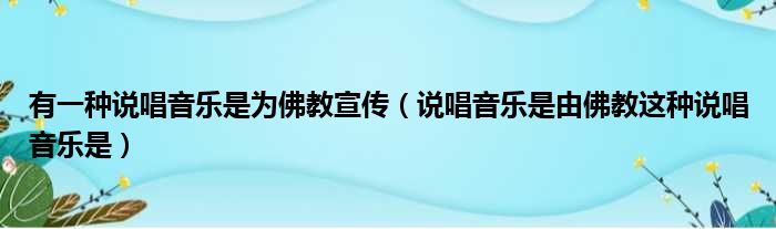 有一种说唱音乐是为佛教宣传(说唱音乐是由佛教这种说唱音乐是)
