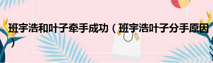 大家好,小东方来为大家解答以上的问题。班宇浩和叶子牵手成功,班宇浩叶子分手原因这个很多人还不知道,现在让我们一起来看看吧!