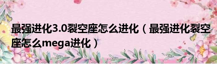 最强进化3.0裂空座怎么进化(最强进化裂空座怎么mega进化)